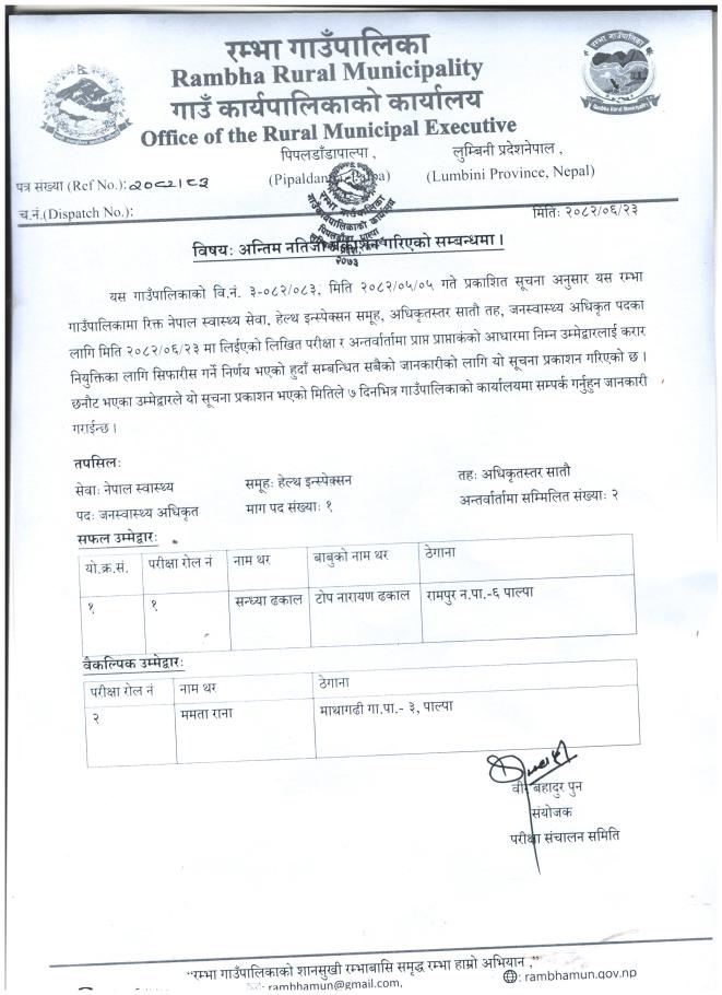अन्तिम नतिजा प्रकाशन गरिएको सम्बन्धमा ।