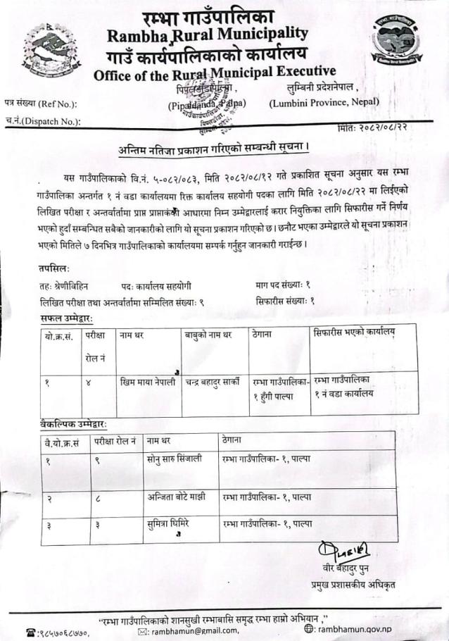 अन्तिम नतिजा प्रकाशन गरिएको सम्बन्धी सूचना