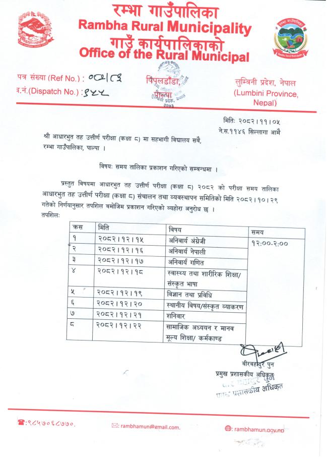 परिक्षा समय तालिका प्रकाशन सम्बन्धमा