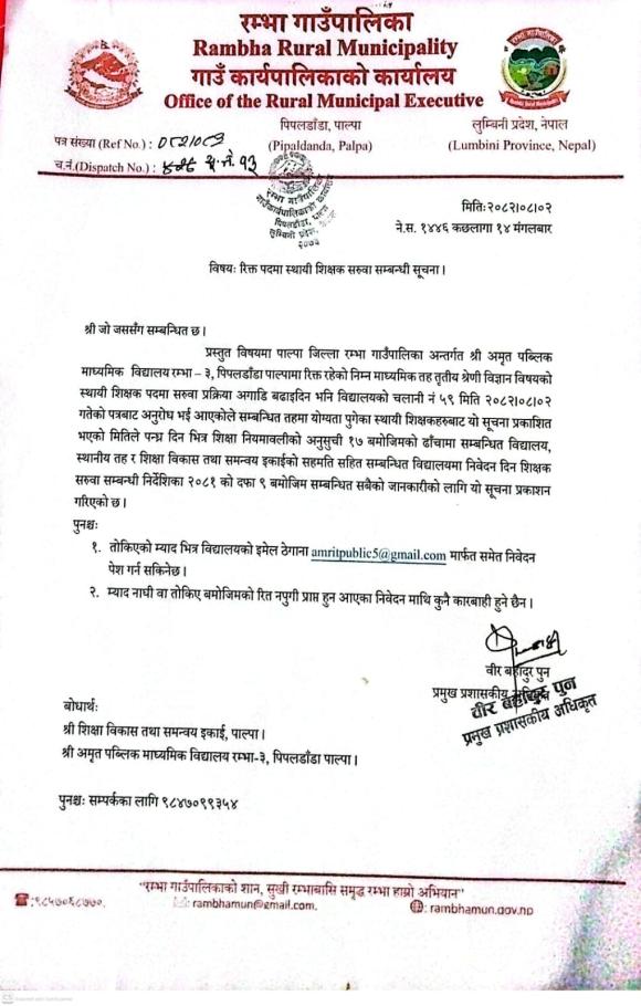 रिक्त पदमा शिक्षक सरुवा सम्बन्धी सुचना