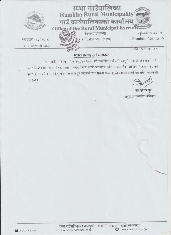 सुचना सच्याइएको सम्बन्धमा ।