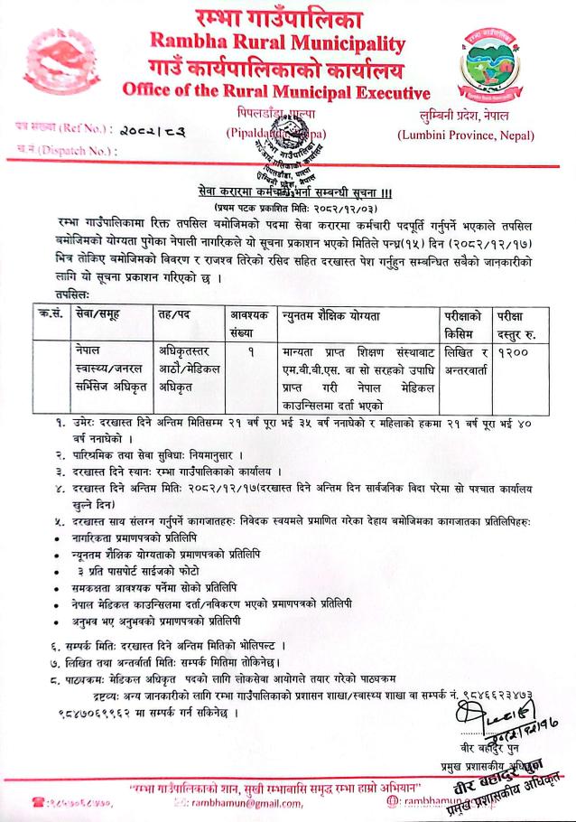 सेवा करारमा कर्मचारी भर्ना सम्बन्धी सूचना