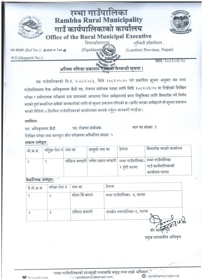 अन्तिम नतिजा प्रकाशन गरिएको सम्बन्धी सूचना