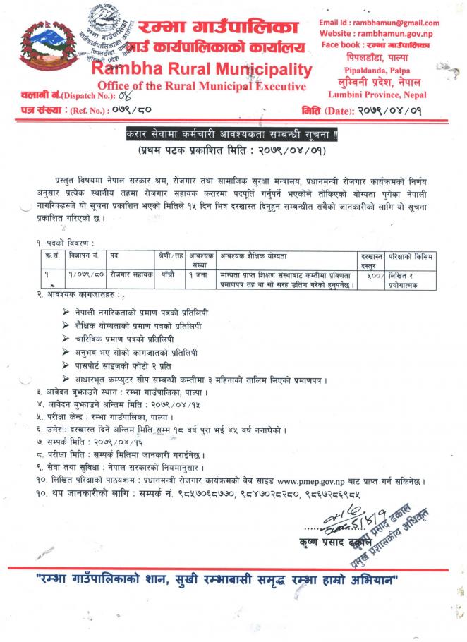 कर्मचारी आवश्यकता सम्बन्धी सुचना ।