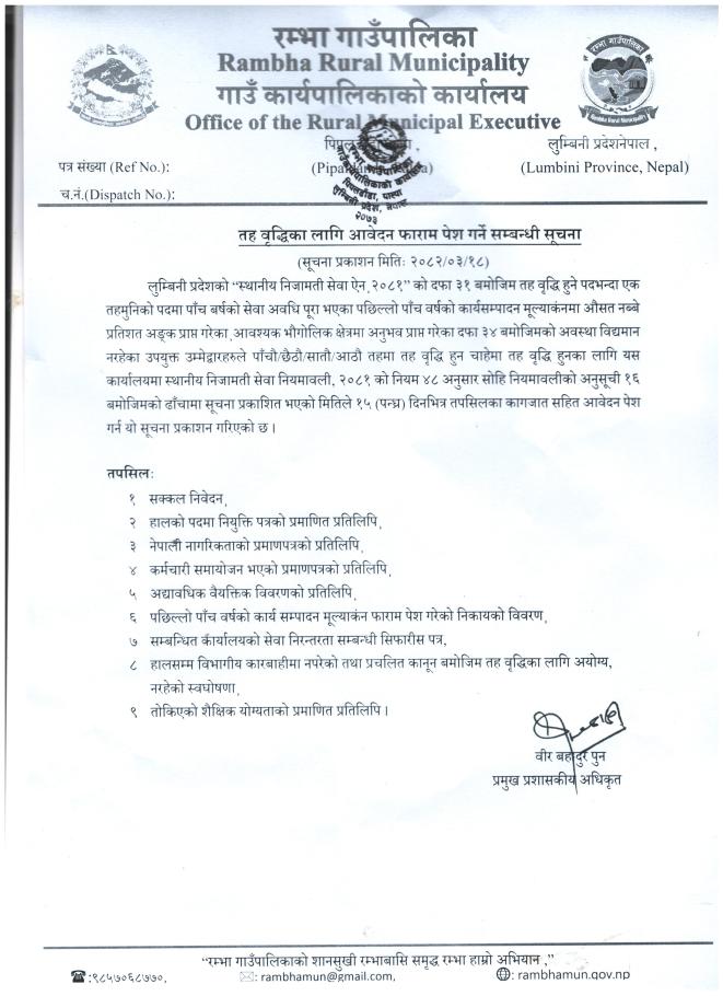 तह वृद्धिका लागि आवेदन फारम पेश गर्ने सम्बन्धी सूचना ।