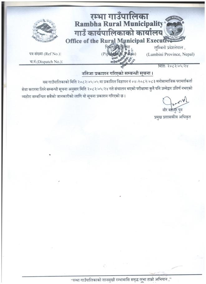 नतिजा प्रकाशन गरिएको सम्बन्धी सूचना ।