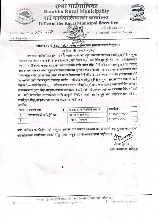 नदिजन्य पदार्थ उत्खनन् तथा संकलन सम्बन्धी सूचना