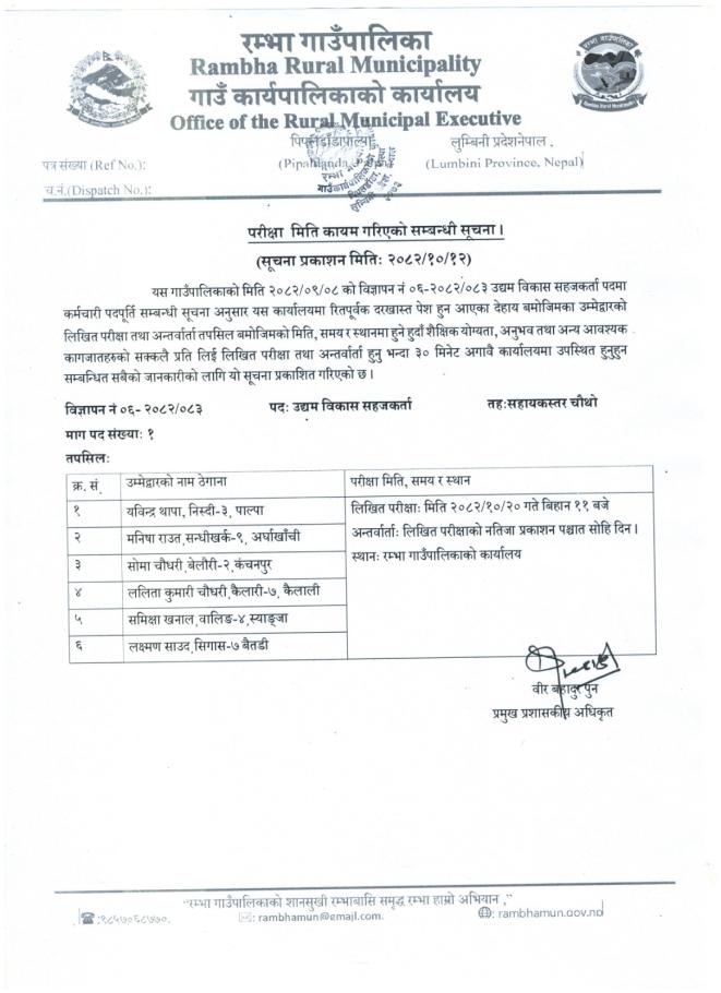 परीक्षाको मिति कायम गारिएको सम्बन्धी सूचना