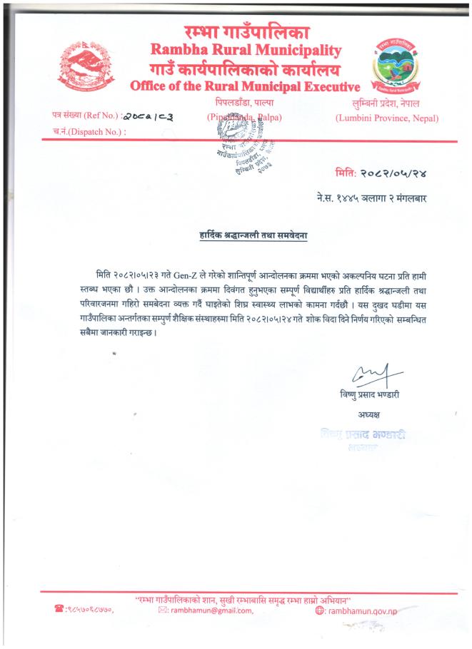हार्दिक श्रद्धान्जली तथा समवेदना