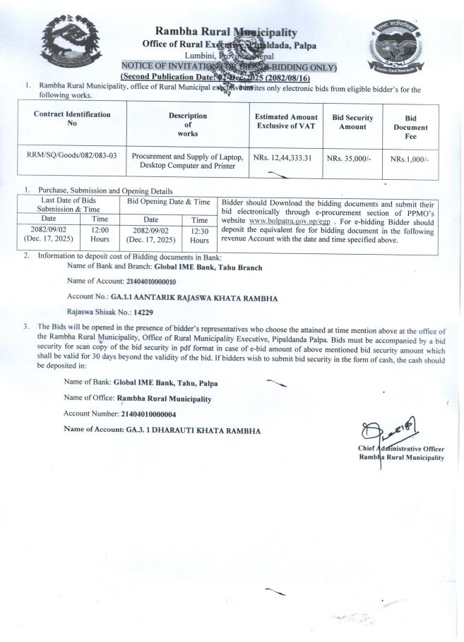 Procurement and Supply of Laptop,Desktop Computer And Printer (Second Publication Date:2082/18/16)