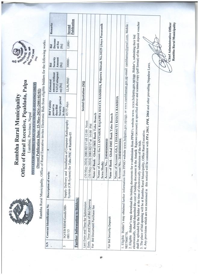 SQ/EB/RRM/Goods/80/81/15-Supply Delivery And Installation of Computer Radiography System(CR-system) for Tahu PHC at Rambha-05